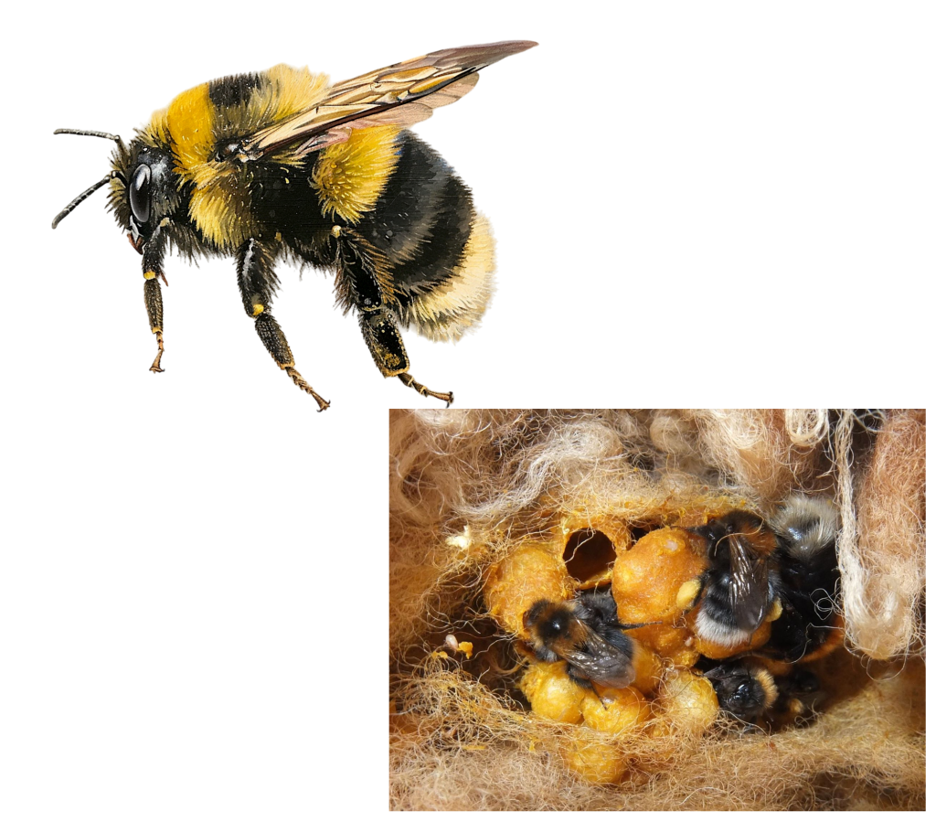 About Bumblebees. Most bumblebee queens look for dry, enclosed spaces which have some sort of insulating material already inside.